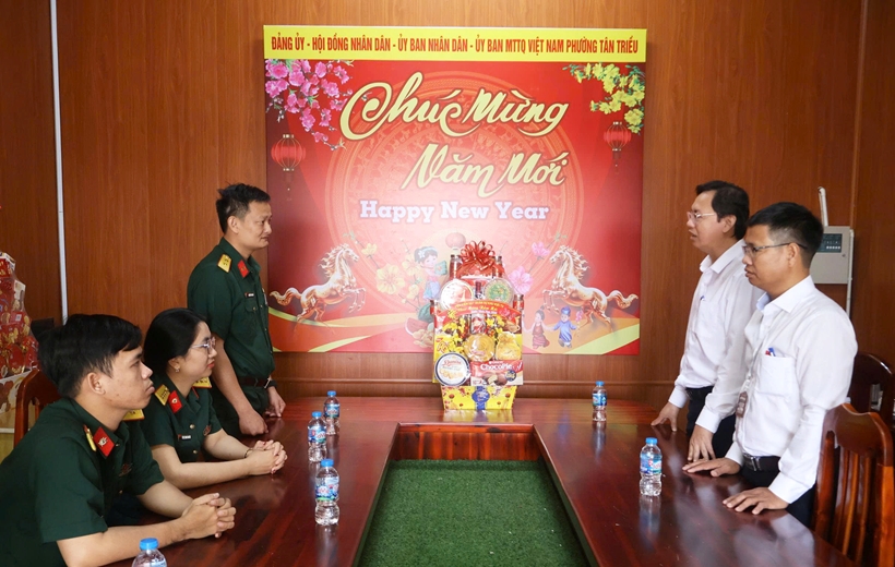 Tiếp đón đoàn có đồng chí Lê Nguyễn Song Toàn - Chủ tịch UBND - Phó Bí thư Đảng ủy phường. Tại buổi gặp mặt, Trung tá Nguyễn Văn Thạch gửi lời thăm hỏi ân cần, lời chúc mừng năm mới sức khỏe, hạnh phúc và thành công đến tập thể lãnh đạo, cán bộ, công chức, viên chức phường Tân Triều.