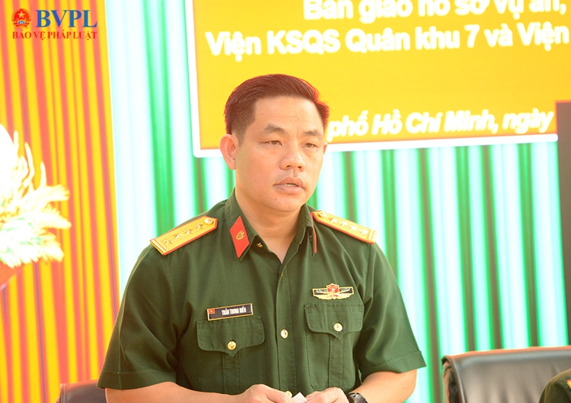 Thay mặt VKS Quân sự Quân khu 7, đồng chí Đại tá Trần Trung Hiếu - Phó Viện trưởng khẳng định hai đơn vị tiến hành bàn giao hồ sơ, tài liệu trước đây VKS Quân sự Quân khu 7 nhận quản lý từ VKS Quân sự Quân đoàn 4 cũ nhằm thực hiện đúng chức năng nhiệm vụ được giao.