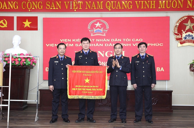 Ngày 27/12, VKSND tỉnh Vĩnh Phúc tổ chức Hội nghị triển khai công tác năm 2025 và đón nhận Huân chương Độc lập hạng Ba. Đồng chí Dương Văn An, Bí thư Tỉnh ủy và đồng chí Hồ Đức Anh, Phó Viện trưởng VKSND tối cao dự và chỉ đạo Hội nghị.