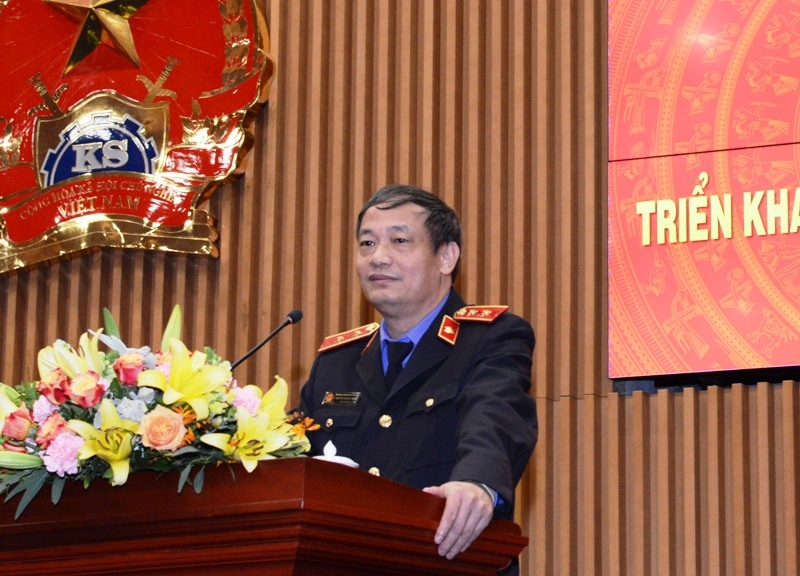 | Đồng chí Nguyễn Huy Tiến, Phó Viện trưởng VKSND tối cao phát biểu chỉ đạo tại hội nghị |