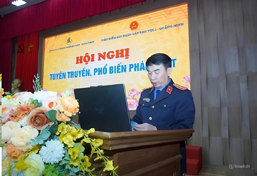 | Đồng chí Ngô Mạnh Tú, Phó Viện trưởng VKSND khu vực 1 - Quảng Ninh tuyên truyền pháp luật về phòng, chống tệ nạn xã hội. |