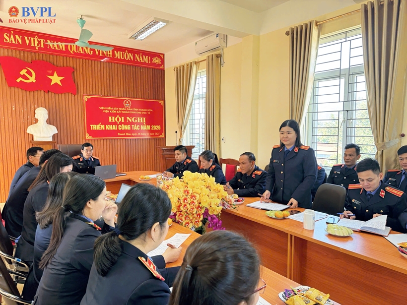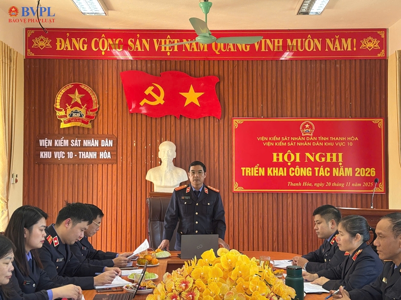 Phát biểu chỉ đạo hội nghị, đồng chí Nguyễn Đình Hà – Viện trưởng VKSND khu vực 10 đã quán triệt tinh thần thực hiện Chỉ thị số 01/CT-VKSTC ngày 10/10/2025 của Viện trưởng VKSND tối cao về công tác của ngành Kiểm sát nhân dân năm 2026, Kế hoạch công tác kiểm sát số 01/KH-VKS-VP ngày 25/10/2025 của VKSND tỉnh Thanh Hóa, Nghị quyết của Chi bộ VKSND khu vực 10 về công tác lãnh đạo, chỉ đạo thực hiện nhiệm vụ năm 2026, VKSND khu vực 10 xây dựng Kế hoạch công tác kiểm sát năm 2026.