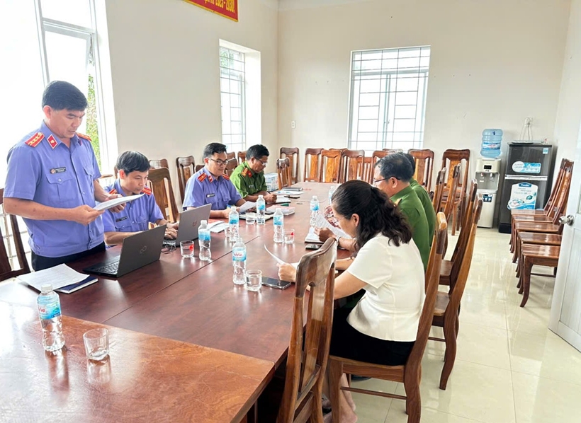 Đoàn kiểm sát do đồng chí Đoàn Sơn Hải - Phó Viện trưởng, Trưởng đoàn chủ trì, cùng các Kiểm sát viên thuộc bộ phận hình sự của VKSND khu vực 15. Đoàn làm việc với UBND xã Sông Hinh và UBND xã Suối Trai theo kế hoạch được phê duyệt.