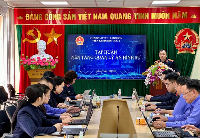 Thực hiện Kế hoạch số 206/KH-VKS ngày 30/10/2025 của VKSND tỉnh Lạng Sơn và Kế hoạch số 06/KH-VKSKV2 ngày 19/11/2025 của VKSND khu vực 2, đơn vị đã tổ chức triển khai thực hiện nền tảng Quản lý án hình sự (QLAHS) ngành Kiểm sát nhân dân theo Hướng dẫn của VKSND tối cao. Buổi tập huấn được tổ chức trong 2 ngày 19, 20/11/2025.