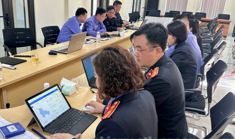 | Lãnh đạo, công chức VKSND khu vực 2 - Lạng Sơn thực hành trên nền tảng Quản lý án hình sự. |