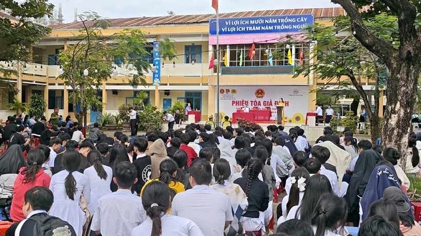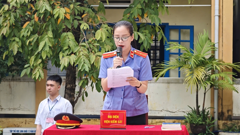 | VKSND khu vực 2 phối hợp tổ chức phiên tòa giả định tuyên truyền pháp luật. |