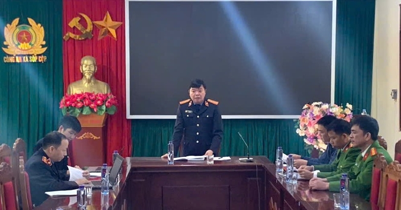 | Đồng chí Lầu Bá Khải - Phó Viện trưởng VKSND khu vực 3, Trưởng đoàn kiểm sát công bố quyết định trực tiếp kiểm sát thi hành án hình sự tại xã Sốp Cộp và xã Púng Bánh, tỉnh Sơn La. |