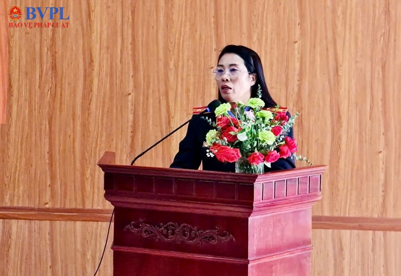 | Đồng chí Đỗ Thị Huyền Tâm – Viện tưởng VKSND khu vực 4 phát biểu tại hội nghị. |