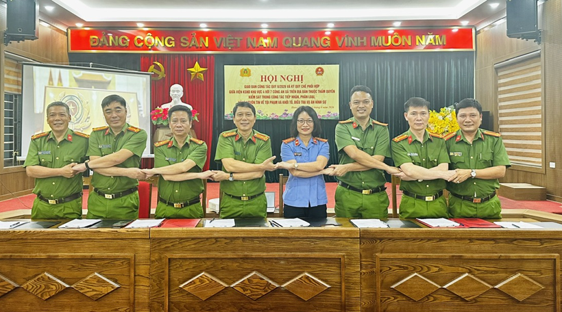 Theo đó, đồng chí Viện trưởng VKSND khu vực 4 cùng 7 đồng chí Trưởng Công an các xã: Như Quỳnh, Lạc Đạo, Đại Đồng, Nghĩa Trụ, Văn Giang, Mễ Sở, Phụng Công nhất trí cao nội dung và tiến hành ký quy chế phối hợp.