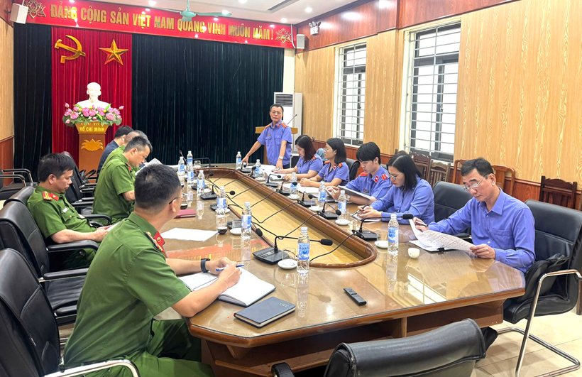 | Đồng chí Trần Văn Thành, Phó Viện trưởng VKSND khu vực 4, Trưởng đoàn kiểm sát thông qua quyết định và kế hoạch trực tiếp kiểm sát tại UBND xã Văn Giang và Công an xã Văn Giang. |