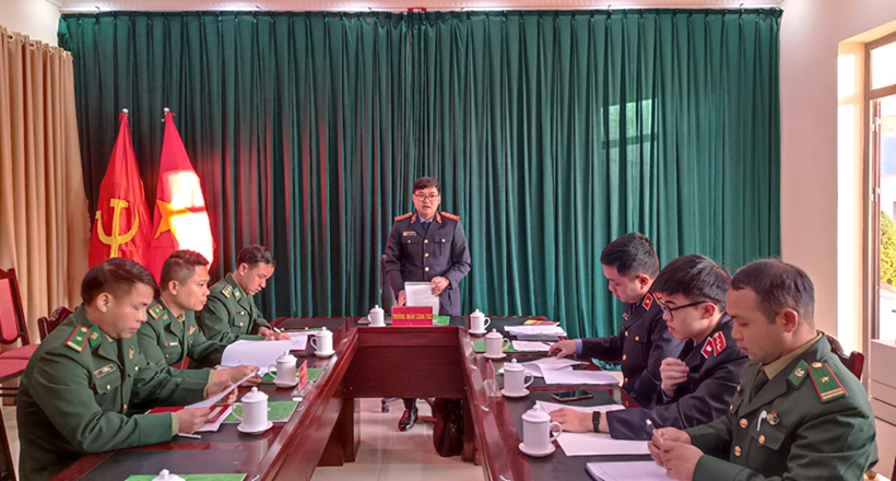 | Đồng chí Vũ Đức Hoàng, Phó Viện trưởng VKSND khu vực 4 công bố Quyết định, kế hoạch kiểm sát trực tiếp tại Đồn Biên phòng Thu Lũm. |