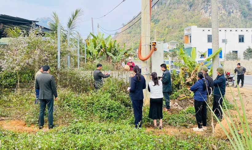 | Tiến hành đo đạc, đánh dấu mốc giới thửa đất. |