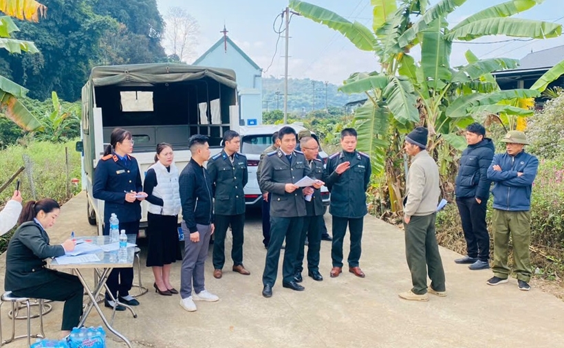 Quá trình cưỡng chế có sự tham gia của các cơ quan chuyên môn và chính quyền địa phương xã Chiềng Mung, Công an xã Chiềng Mung, tỉnh Sơn La.