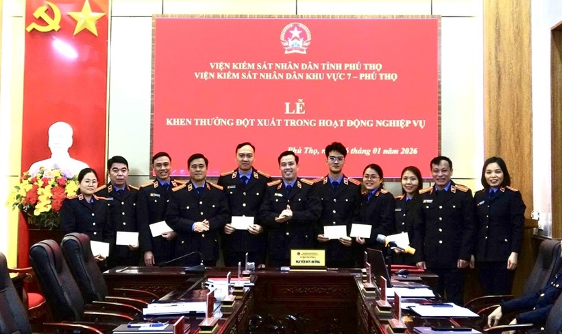 Nhân dịp này, đồng chí Nguyễn Đức Hưởng - Bí thư Chi bộ, Viện trưởng VKSND khu vực 7 đã khen thưởng đột xuất cho Kiểm sát viên, Kiểm tra viên và chuyên viên của Bộ phận dân sự vì đã có thành tích hoàn thành xuất sắc nhiệm vụ trong việc kiểm sát trực tiếp công tác THADS, kiểm sát việc cưỡng chế thi hành án, ban hành 2 kháng nghị, 2 bản kiến nghị đối với THADS tỉnh Phú Thọ và TAND khu vực 7, tỉnh Phú Thọ.