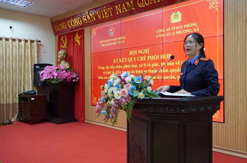 Dự và chủ trì Lễ ký kết có đồng chí Nguyễn Thị Băng Tâm – Viện trưởng VKSND khu vực 8, cùng tham dự có đồng chí Trần Đức Minh và đồng chí Phạm Đức Cường – Phó Thủ trưởng Cơ quan CSĐT (PC01) – Công an TP Hải Phòng; Các đồng chí là Trưởng, Phó Công an các phường, xã: Hải Dương, Thành Đông, Lê Thanh Nghị, Thạch Khôi, Tân Hưng, Ái Quốc, Nam Đồng, Thanh Hà, Hà Đông, Hà Tây, Hà Bắc, Hà Nam; Lãnh đạo và toàn thể công chức VKSND khu vực 8.