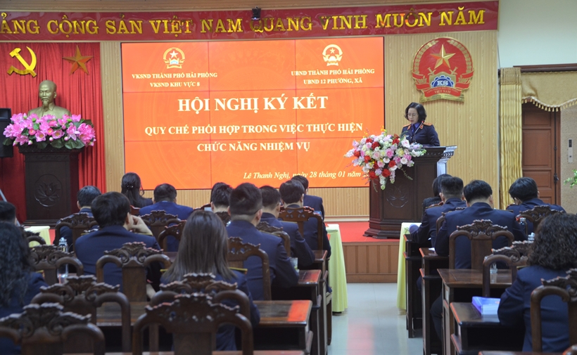 Tham dự và chỉ đạo Hội nghị có đồng chí Nguyễn Huy Tài, Ủy viên Ban Thường vụ Đảng ủy, Phó Viện trưởng VKSND TP Hải Phòng, cùng đại diện lãnh đạo, cán bộ các đơn vị trực thuộc VKSND thành phố. Về phía VKSND khu vực 8 có đồng chí Nguyễn Thị Băng Tâm, Bí thư Chi bộ, Viện trưởng VKSND khu vực 8, cùng tập thể lãnh đạo, Kiểm sát viên của đơn vị. Hội nghị còn có sự tham dự của lãnh đạo Đảng ủy, UBND 12 xã, phường ký kết Quy chế phối hợp.