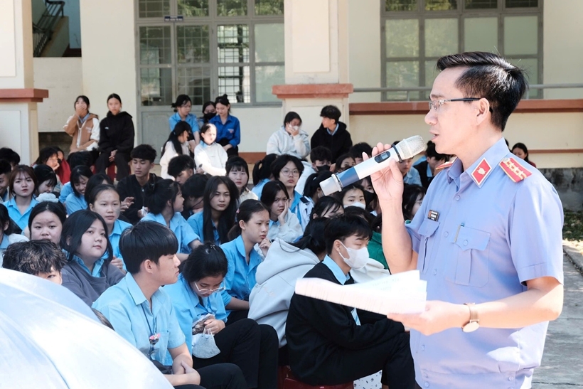 | Đồng chí Hoàng Minh Chung – Viện trưởng VKSND khu vực 8 tuyên truyền phổ biến giáo dục pháp luật tại trường học. |
