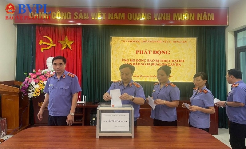 Cơn bão số 10 (Bualoi) đi qua, gây thiệt hại nặng nề cho nhân dân, đặc biệt là người dân tại các địa phương khu vực Bắc Bộ và Bắc Trung Bộ. Sáng ngày 6/10/2025, đồng chí Phạm Đức Hoành – Bí thư chi bộ, Viện trưởng VKSND khu vực 8, tỉnh Hưng Yên đã phát động mỗi công chức, người lao động ủng hộ ít nhất 1 ngày lương để sẻ chia về tinh thần, vật chất, góp phần cùng với Đảng và Nhà nước giúp đỡ đồng bào khắc phục khó khăn, giảm nhẹ hậu quả do thiên tai gây ra để sớm ổn định cuộc sống.