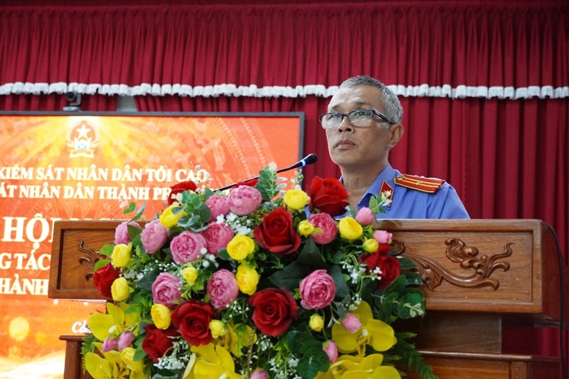 | Đồng chí Lê Nguyễn Trường Sơn, Phó Bí thư Đảng ủy, Phó Viện trưởng VKSND thành phố Cần Thơ phát biểu chỉ đạo Hội nghị |