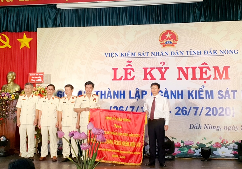 Nhân dịp kỷ niệm 60 năm ngày thành lập ngành, Ban chấp hành Đảng bộ tỉnh Đắk Nông đã trao tặng ngành KSND tỉnh bức trướng thêu 8 chữ vàng “Bản lĩnh, kỷ cương, trách nhiệm, hiệu quả” để ghi nhận, biểu dương cho quá trình xây dựng và phát triển của ngành KSND tỉnh./.