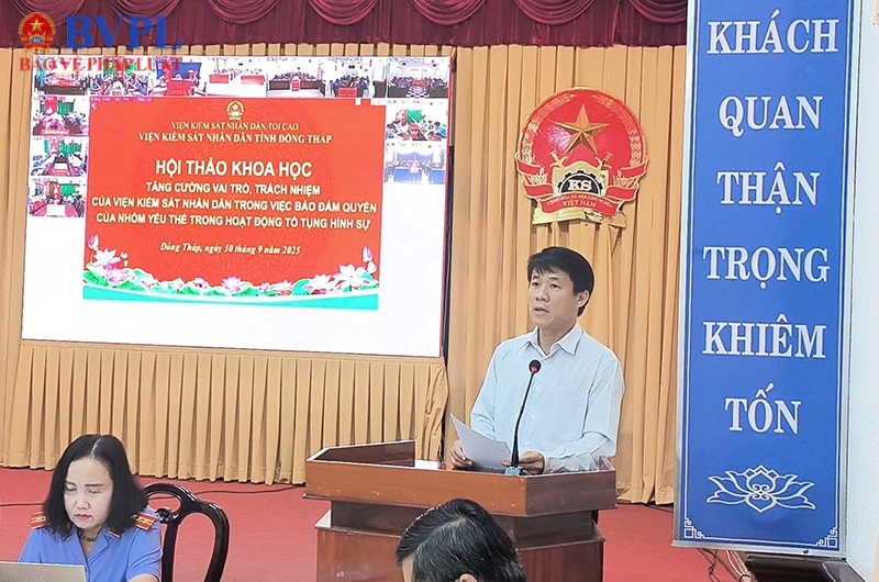 Tổng kết hội thảo, đồng chí Phạm Xuân Minh - Phó Viện trưởng VKSND tỉnh Đồng Tháp nhấn mạnh, hội thảo có chủ đề, nội dung thiết thực, có ý nghĩa quan trọng trong việc tăng cường vai trò, trách nhiệm của VKSND trong việc bảo đảm quyền của nhóm yếu thế trong tố tụng hình sự hiện nay, phục vụ trực tiếp cho công tác nghiên cứu, đào tạo lý luận và thực tiễn đối với Viện kiểm sát nhân dân cũng như sự phối hợp của hệ thống chính trị trong bảo đảm quyền của nhóm yếu thế trong tố tụng hình sự hiện nay. Các tham luận gửi đến hội thảo và các báo cáo trình bày tại Hội thảo đã làm rõ, khẳng định giá trị lý luận và thực tiễn sâu sắc.