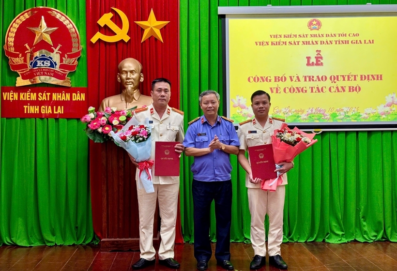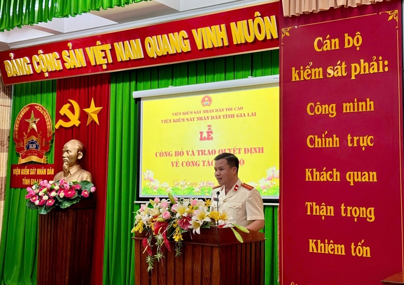 Tại hội nghị, đồng chí Trịnh Viết Diệp - Trưởng phòng Tổ chức cán bộ VKSND tỉnh Gia Lai công bố các quyết định của Viện trưởng VKSND tỉnh Gia Lai về việc điều động, bổ nhiệm đồng chí Phạm Bình An - Kiểm sát viên trung cấp, Phó Viện trưởng VKSND khu vực 13 giữ chức vụ Phó Trưởng phòng Phòng 8 VKSND tỉnh; điều động, bổ nhiệm đồng chí Nguyễn Văn Hải - Kiểm sát viên sơ cấp, Phó Viện trưởng VKSND khu vực 1 giữ chức vụ Phó Chánh Văn phòng VKSND tỉnh Gia Lai. Thời gian điều động và bổ nhiệm, kể từ ngày 1/11/2025.