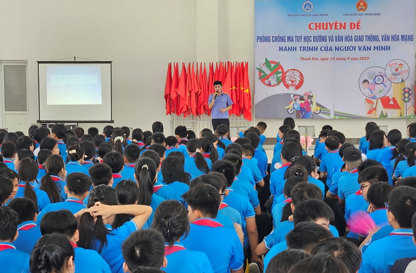 Sáng nay (13/9), tại Trường THCS Lê Văn Thiêm, phường Thành Sen (Hà Tĩnh), VKSND tỉnh Hà Tĩnh đã chủ trì tổ chức buổi truyên truyền, phổ biến, giáo dục pháp luật đến gần 1.000 học sinh và thầy cô giáo tại trường.