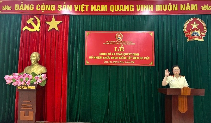 Đồng chí Nguyễn Trà My phát biểu nhận nhiệm vụ, bày tỏ sự trân trọng trước sự quan tâm, tin tưởng của lãnh đạo các cấp; đồng thời cam kết sẽ nỗ lực phấn đấu, hoàn thành tốt, hoàn thành xuất sắc nhiệm vụ được giao. Công tác bổ nhiệm Kiểm sát viên có ý nghĩa quan trọng trong việc kiện toàn tổ chức bộ máy, thực hiện các chủ trương của Đảng về cải cách tư pháp, xây dựng đội ngũ cán bộ ngành Kiểm sát trong sạch, vững mạnh, đáp ứng yêu cầu nhiệm vụ trong tình hình mới./.