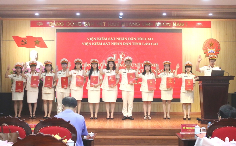 Phát biểu tiếp thu ý kiến chỉ đạo, đồng chí Hà Hải Nam, tân Kiểm sát viên sơ cấp Phòng 1, đại diện các đồng chí được bổ nhiệm, đã đọc lời tuyên thệ và bày tỏ sự cảm ơn đối với sự tin tưởng của Ban Thường vụ Đảng ủy và tập thể lãnh đạo VKSND tỉnh Lào Cai.