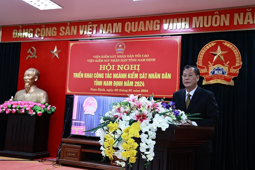 Phát biểu chỉ đạo tại Hội nghị, đồng chí Nguyễn Duy Giảng, Phó Viện trưởng VKSND tối cao ghi nhận, đánh giá cao, nhiệt liệt biểu dương những cố gắng nỗ lực, kết quả, thành tích mà ngành Kiểm sát nhân dân tỉnh Nam Định đã đạt được trong thời gian qua. Đề nghị VKSND tỉnh Nam Định tiếp tục tập trung phân tích, làm rõ việc gì đã làm tốt, việc gì làm chưa tốt, tập trung phân tích kỹ nguyên nhân để thấy rõ hơn trách nhiệm của mình và tìm ra những giải pháp tích cực, hữu hiệu khắc phục những hạn chế, thiếu sót, tiếp tục đổi mới, nâng cao hơn nữa chất lượng, hiệu quả của công tác kiểm sát trong năm 2024 và những năm tiếp theo.