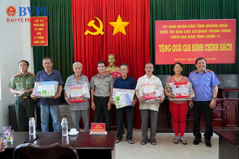 | Đồng chí Đinh Hồng Thanh - Phó Viện trưởng VKSND tỉnh Quảng Ngãi cùng đại diện lãnh đạo CAND, Cục THA tỉnh Quảng Ngãi tặng quà cho gia đình chính sách. |