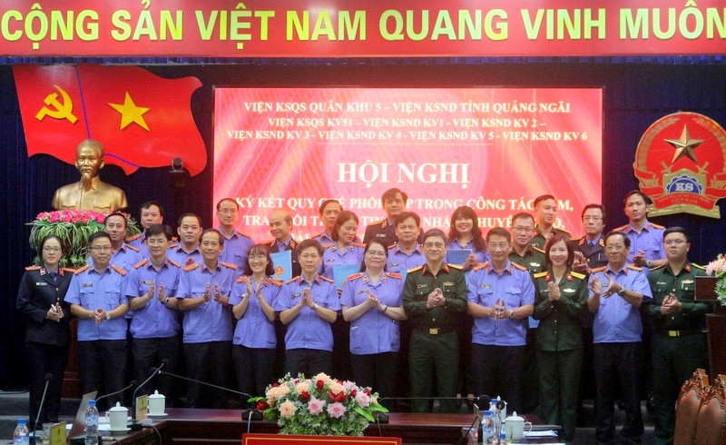 Kết thúc hội nghị, đại diện VKSQS khu vực 51 và đại diện VKSND khu vực 1, 2, 3, 4, 5, 6 tiến hành ký kết Quy chế phối hợp. Việc ký kết không chỉ tạo cơ sở pháp lý quan trọng cho hoạt động phối hợp mà còn góp phần nâng cao hiệu quả đấu tranh phòng, chống tội phạm, bảo đảm tình hình an ninh chính trị và trật tự an toàn xã hội tại Quảng Ngãi và khu vực Quân khu 5.