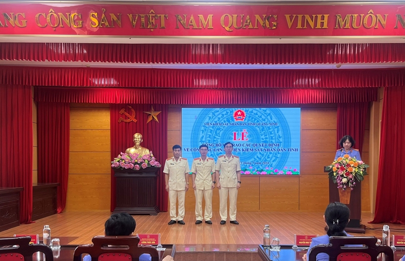 Tại buổi Lễ, Lãnh đạo Phòng Tổ chức cán bộ VKSND tỉnh Quảng Ninh công bố 4 Quyết định của Viện trưởng VKSND tối cao và 3 quyết định của Viện trưởng VKSND tỉnh về điều động, bổ nhiệm lãnh đạo, quản lý. Cụ thể: