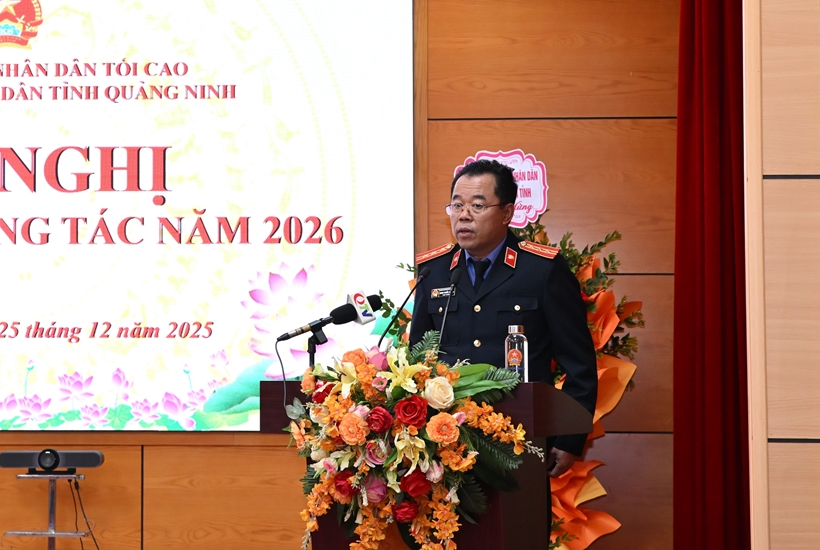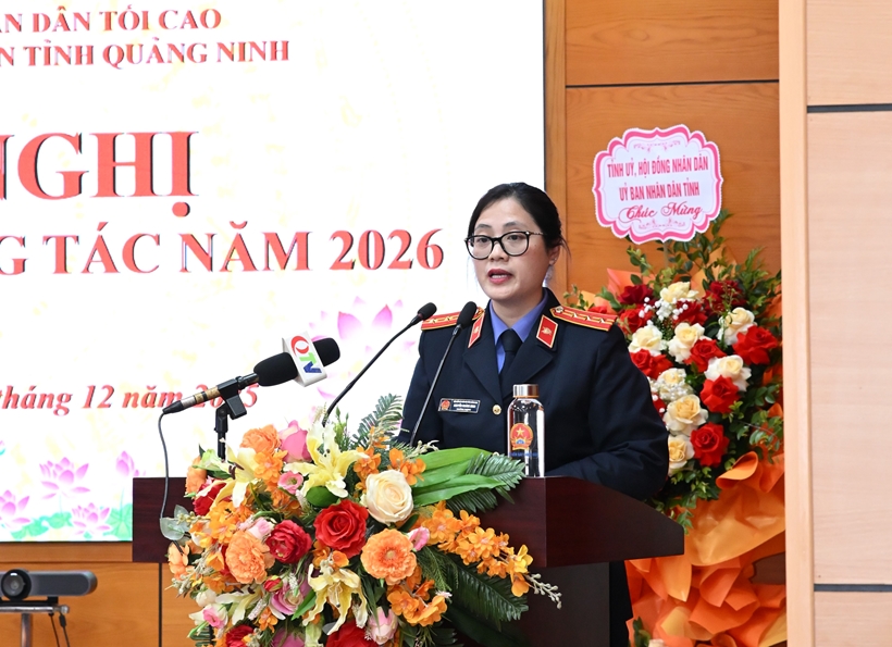 Đồng chí Phó Viện trưởng VKSND tối cao, thống nhất với báo cáo kết quả năm 2025 và kế hoạch công tác năm 2026 của VKSND tỉnh Quảng Ninh, đồng thời, đề nghị VKSND tỉnh Quảng Ninh tiếp tục nắm chắc, dự báo sát tình hình tội phạm, vi phạm pháp luật, đặc biệt là các vấn đề liên quan an ninh chính trị và tội phạm trên không gian mạng để chủ động phối hợp phòng ngừa, đấu tranh, phục vụ nhiệm vụ chính trị trước thềm đại hội Đảng.