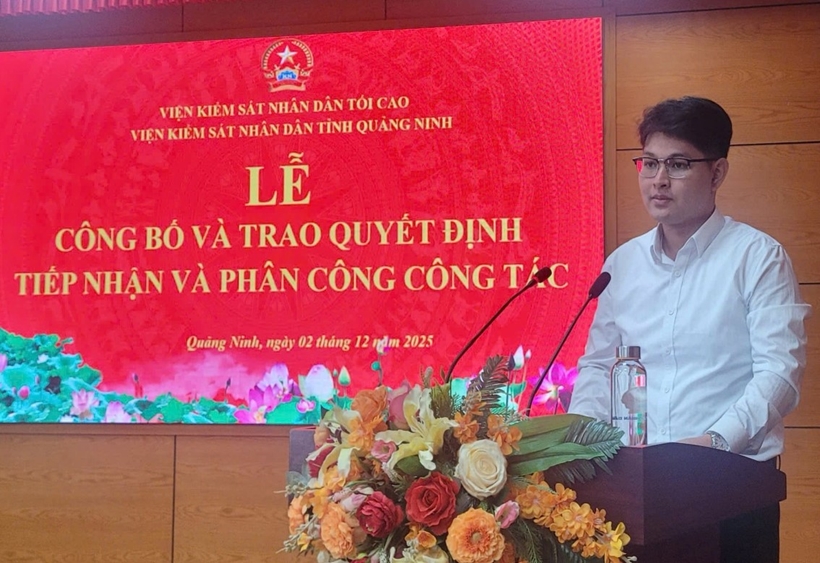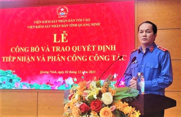 Tại buổi lễ, đại diện Phòng Tổ chức cán bộ công bố các Quyết định của Viện trưởng VKSND tỉnh Quảng Ninh về việc tiếp nhận và phân công 12 công chức mới trúng tuyển về công tác tại 6 VKSND khu vực, kể từ ngày 01/12/2025, nhằm tạo môi trường rèn luyện thực tiễn, toàn diện cho đội ngũ công chức trẻ.