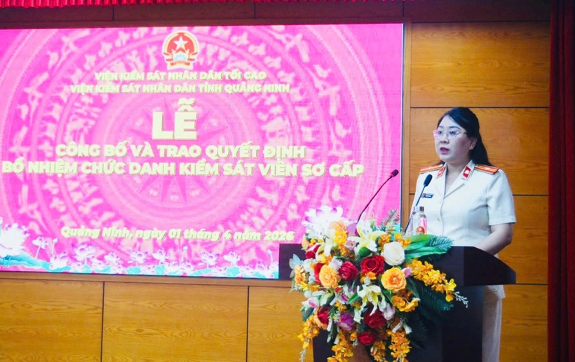 Tại buổi lễ, đồng chí Đặng Đình Vang, Phó Bí thư Đảng uỷ, Phó Viện trưởng VKSND tỉnh Quảng Ninh thay mặt Ban Thường vụ Đảng uỷ, Lãnh đạo Viện chúc mừng các đồng chí đã xuất sắc vượt qua kỳ thi tuyển và được bổ nhiệm chức danh Kiểm sát viên sơ cấp. Đồng chí nhấn mạnh đây là vinh dự lớn lao, thể hiện sự nỗ lực, cố gắng của mỗi đồng chí trong quá trình công tác, phấn đấu, đồng thời cũng cho thấy kết quả công tác đào tạo, tự đào tạo của các đơn vị nói riêng và của ngành Kiểm sát Quảng Ninh nói chung.