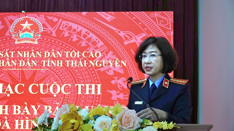| Đồng chí Nguyễn Thị Mai Lập, Viện trưởng VKSND tỉnh Thái Nguyên phát biểu tại Lễ khai mạc cuộc thi. |