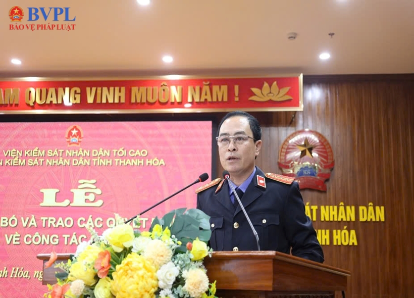 Tại buổi lễ, đồng chí Đặng Anh Chiến, Trưởng phòng Tổ chức cán bộ VKSND tỉnh Thanh Hoá đã công bố các quyết định của Viện trưởng VKSND tỉnh về việc điều động chức vụ lãnh đạo quản lý cấp Phòng VKSND tỉnh đối với 6 đồng chí và VKSND khu vực đối với 12 đồng chí. Các quyết định điều động, bổ nhiệm có hiệu lực kể từ ngày 10/12/2025.