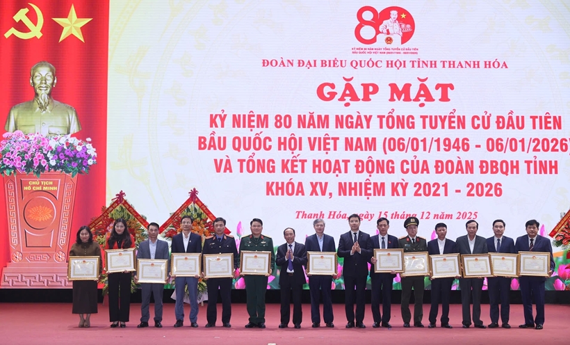 Nhân dịp này, VKSND tỉnh Thanh Hóa vinh dự được Chủ tịch UBND tỉnh tặng Bằng khen cho tập thể có thành tích xuất sắc trong tham gia hoạt động của Đoàn ĐBQH tỉnh khóa XV, nhiệm kỳ 2021-2026.