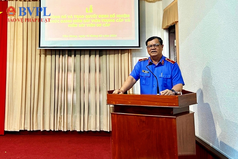 Cũng tại buổi lễ, thay mặt lãnh đạo VKSND tỉnh Tiền Giang, đồng chí Chánh văn phòng Võ Văn Tâm công bố quyết định phân công công tác đối với 3 Kiểm sát viên trung cấp được điều động về công tác tại VKSND tỉnh. Quyết định có hiệu lực kể từ ngày 16/2/2024.