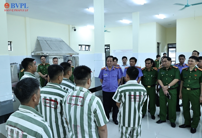 | Đồng chí Trần Hải Quân, Phó Viện trưởng VKSND tối cao và đoàn kiểm tra động viên các phạm nhân được đặc xá đợt 2 năm 2025 tại Bắc Ninh. |