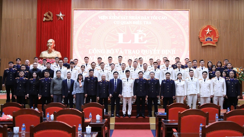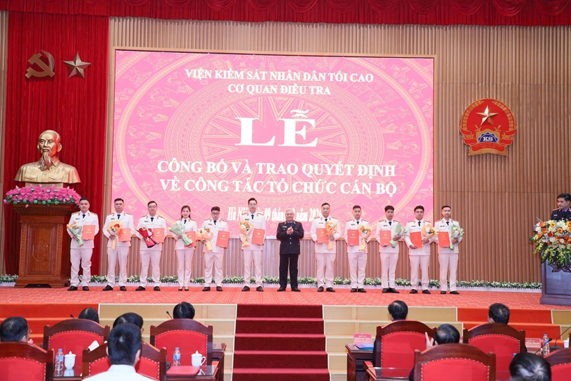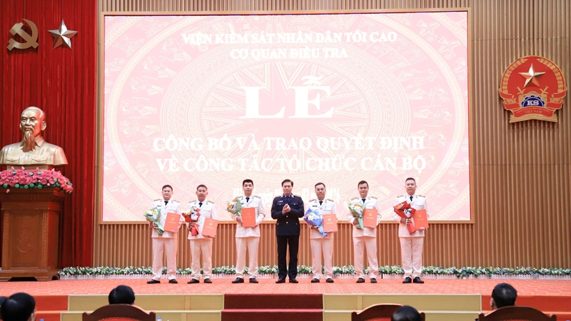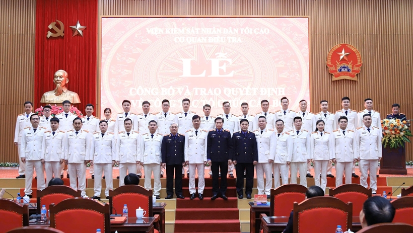 Cũng tại buổi lễ, đồng chí Lê Đức Hùng tiếp tục công bố các Quyết định của VKSND tối cao bổ nhiệm 33 đồng chí trúng tuyển kỳ thi Điều tra viên các ngạch năm 2025, gồm: 6 đồng chí được bổ nhiệm Điều tra viên cao cấp, 15 đồng chí Điều tra viên trung cấp và 13 đồng chí Điều tra viên sơ cấp. Thời gian bổ nhiệm là 10 năm.