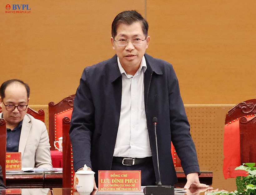 | Đồng chí Lưu Đình Phúc - Cục trưởng Cục Báo chí, Bộ Văn hoá, Thể thao và Du lịch phát biểu. |
