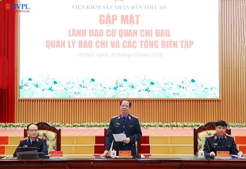 Cùng chủ trì buổi gặp mặt có đồng chí Nguyễn Văn Thắng, Tổng Biên tập Báo Bảo vệ pháp luật, Phó Trưởng ban Thường trực Ban chỉ đạo công tác tuyên truyền ngành KSND; đồng chí Phạm Thanh Từng, Chánh Văn phòng, người phát ngôn VKSND tối cao.