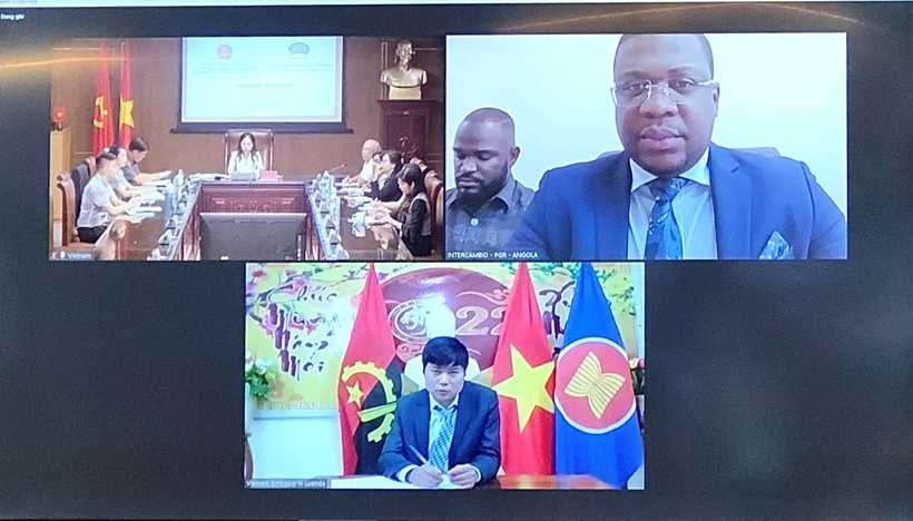 Buổi làm việc được tổ chức trực tuyến, nối từ điểm cầu VKSND tối cao Việt Nam đến Cơ quan Tổng Chưởng lý Cộng hoà Angola và Đại sứ quán Việt Nam tại Angola.