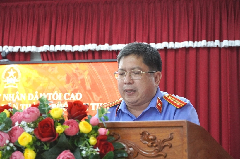 | Đồng chí Lê Nguyễn Trường Sơn, Phó Bí thư Đảng ủy, Phó Viện trưởng VKSND thành phố Cần Thơ phát biểu tại Hội nghị. |