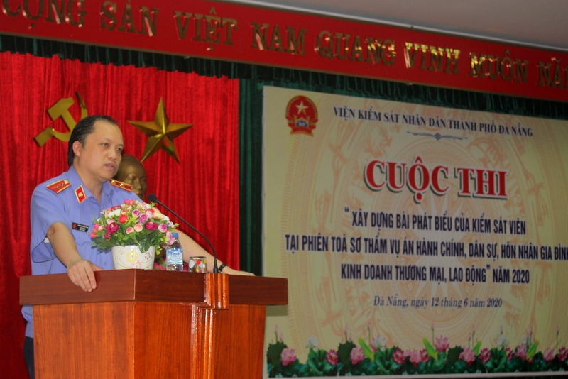 Phát biểu khai mạc cuộc thi, đồng chí Lê Tiến – Viện trưởng VKSND TP Đà Nẵng nhấn mạnh về ý nghĩa quan trọng, kịp thời trong việc tổ chức cuộc thi này.