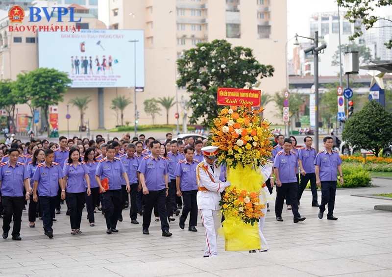 Trong không khí trang nghiêm, đầy tự hào, tập thể lãnh đạo, công chức VKSND hai cấp thành phố đã thành kính bày tỏ lòng biết ơn vô hạn trước công lao vĩ đại của Chủ tịch Hồ Chí Minh. Nửa thế kỷ TP Hồ Chí Minh rạng rỡ mang tên Bác cũng chính là hành trình 50 năm VKSND thành phố giữ vững cán cân công lý, bảo vệ quyền và lợi ích hợp pháp của Nhân dân. Qua đó, mỗi công chức, Kiểm sát viên sẽ là một “đóa hoa” trong vườn hoa dâng Bác, luôn đoàn kết, nỗ lực hoàn thành xuất sắc mọi nhiệm vụ mà Đảng và Nhân dân giao phó.