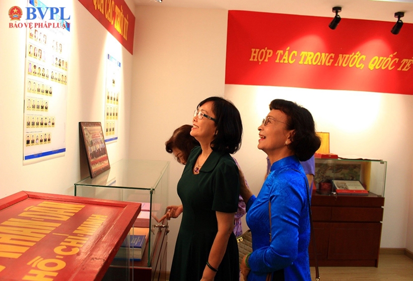 | Các đồng chí hưu trí tham quan Phòng truyền thống VKSND thành phố. |