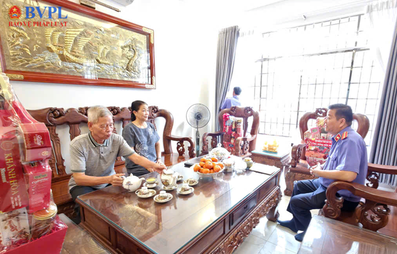 Đồng chí Võ Quang Huy đã ân cần thăm hỏi sức khỏe, đời sống của đồng chí Nguyễn Thị Thủy Khiêm, đồng chí Trần Thu và gia đình; trao tặng phần quà tri ân của VKSND thành phố đến gia đình; chúc các đồng chí và gia đình luôn mạnh khỏe.